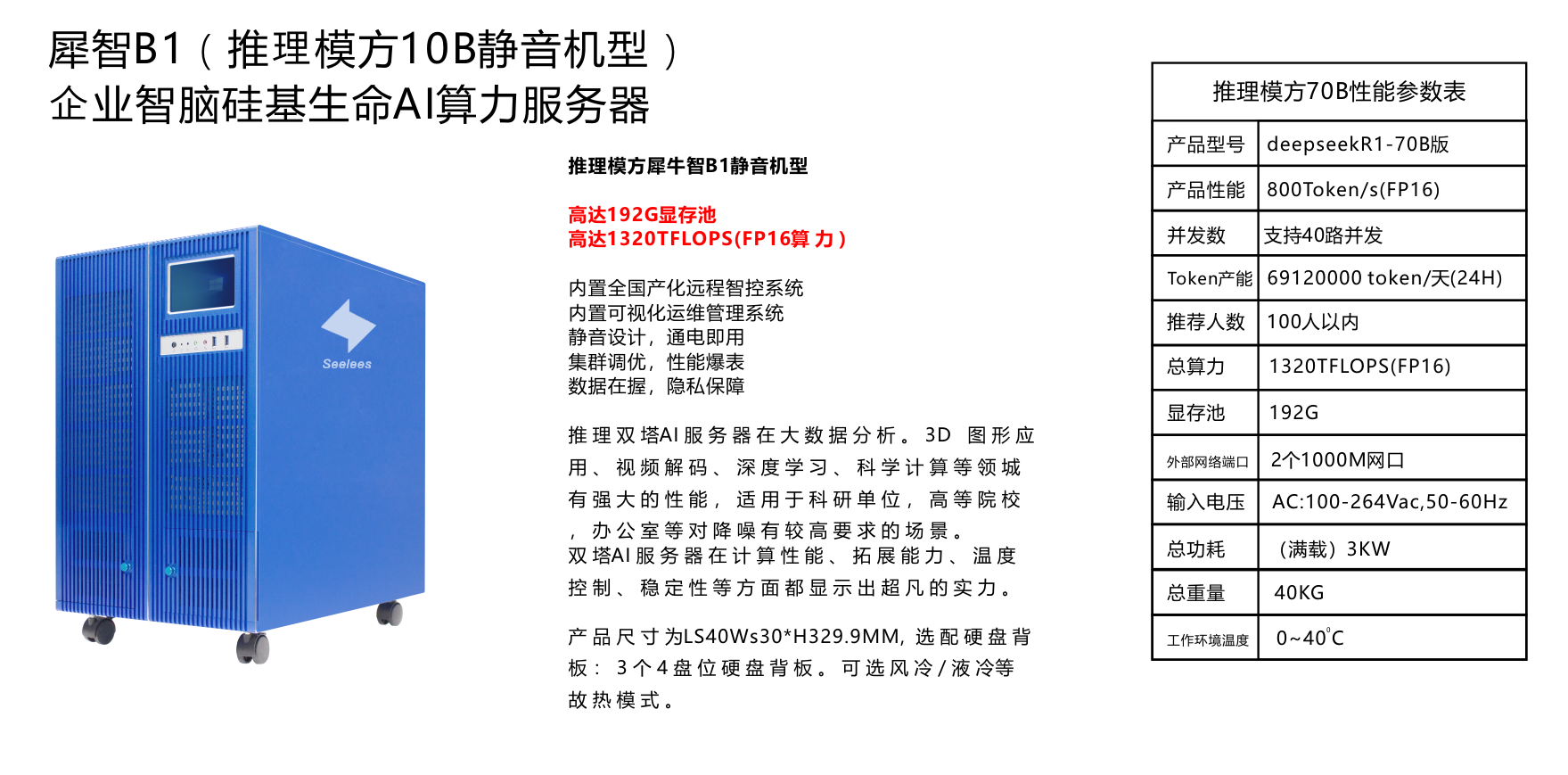 B:企业AI智能体算力服务器:犀智B1:企B:业智能硅基生命AI算力服务器(满足30~50人的企业使用))。